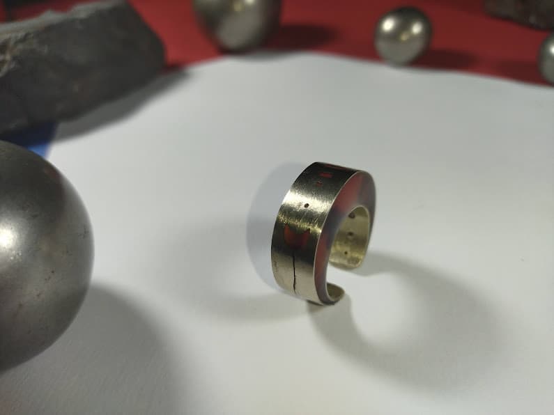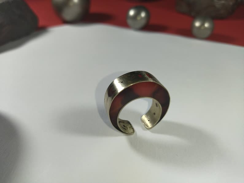Sumérgete en la originalidad con el anillo Dúo Esencia, una pieza única elaborada en alpaca y resina. Este anillo talla 18 no solo destaca por su volumen y presencia, sino por su diseño innovador de doble faz. Cada lado revela una historia diferente, con una particularidad que lo hace verdaderamente especial: su diseño interior y exterior son distintos, ofreciendo dos estilos en uno. Un lado presenta una estética, mientras que el opuesto exhibe una faceta completamente diferente, brindándote versatilidad y misterio en una sola joya.