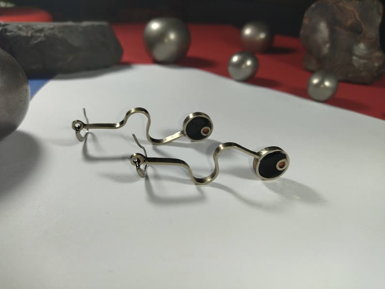 Una creación artesanal que fusiona la nobleza de la alpaca con la versatilidad de la resina. Cada pendiente, ha sido cuidadosamente moldeado a mano para crear una forma orgánica y fluida, adornada con resina que añade profundidad y color. Perfectas para un toque de sofisticación artesanal en tu día a día o para esa ocasión especial.