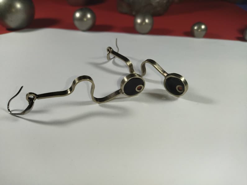 Descubre la originalidad y el estilo único de estas caravanas, piezas diseñadas y elaboradas artesanalmente con alpaca de alta calidad y resina. Con una longitud de 6 cm, su silueta sinuosa captura la esencia del movimiento, culminando en dos detalles circulares de resina con toques vibrantes. Ideales para quienes buscan complementar su look con un accesorio moderno y distintivo, hecho a mano con pasión.
