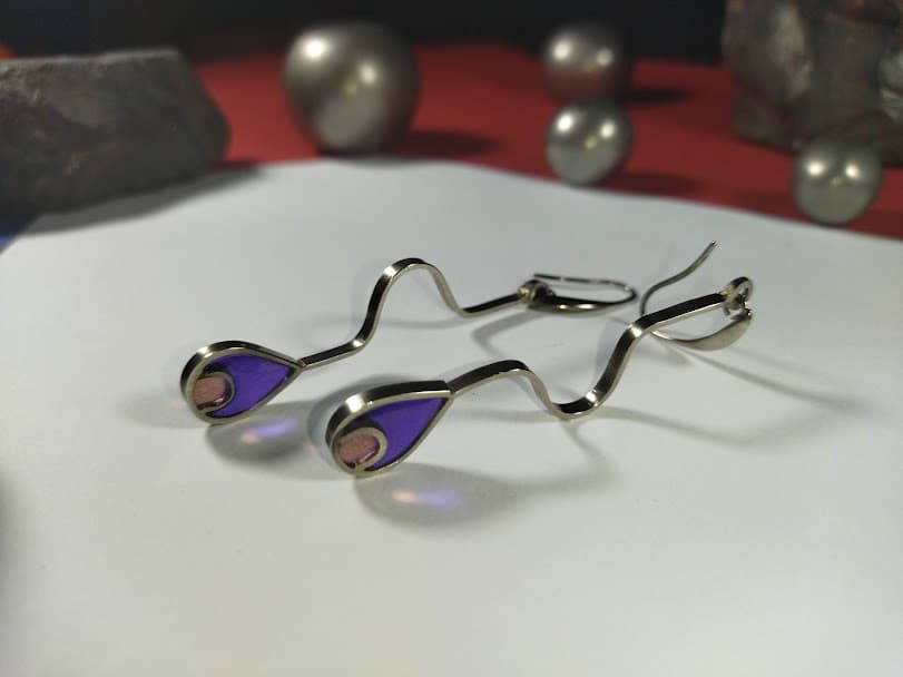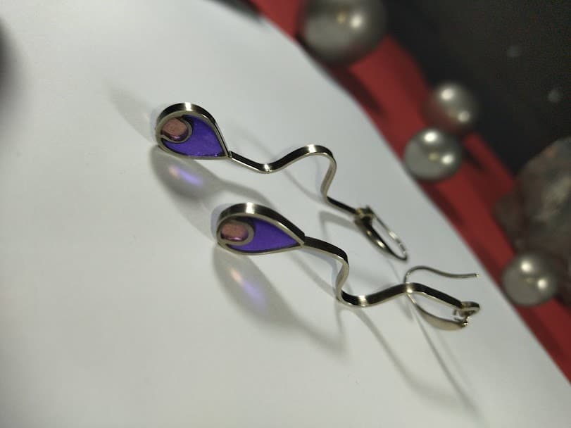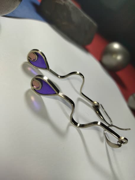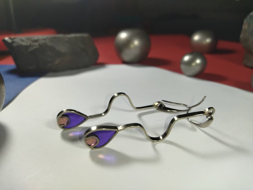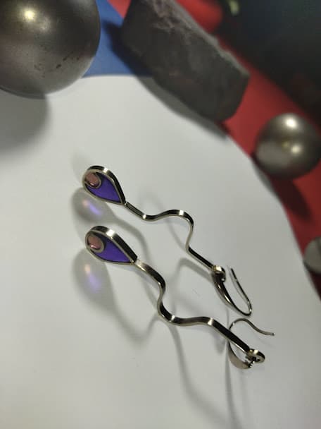 Añade un toque de arte y movimiento a tu estilo con las caravanas «Tali». Cada pieza es una creación de autora, meticulosamente elaborada a mano con alpaca de alta calidad y resina vibrante. Con una longitud elegante de 6 cm, su diseño sinuoso y fluido captura la luz y evoca la gracia de una onda. En el extremo inferior, un toque de color en resina (púrpura intenso con un detalle sutil en tono coral) añade un foco de atención cautivador. Son el accesorio perfecto para quienes buscan una joya que combine originalidad, modernidad y la calidez de lo artesanal.