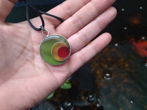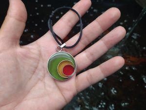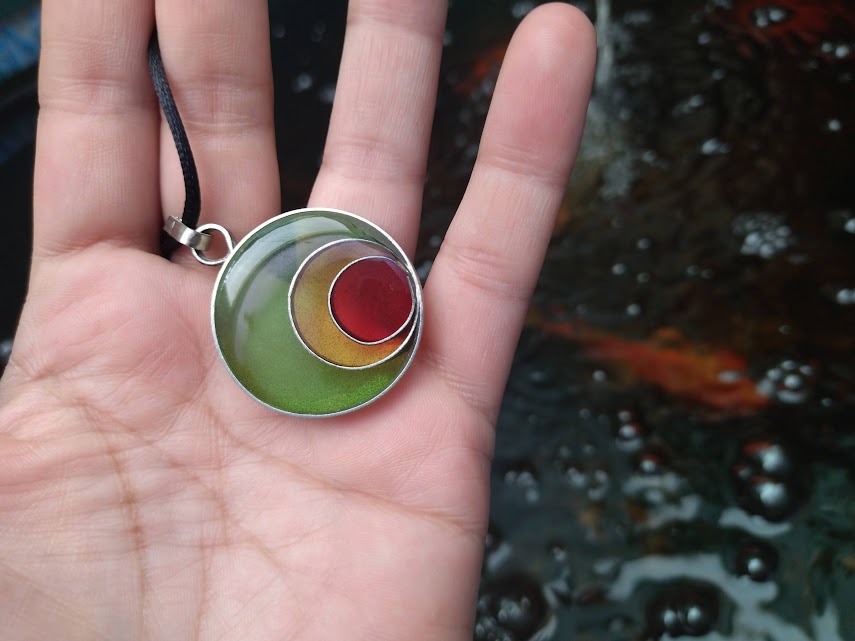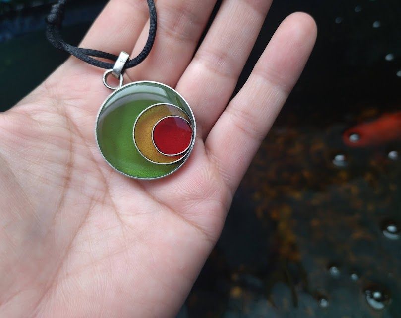 Un accesorio con presencia y personalidad. Este colgante de 3,4 cm destaca por su profundidad visual, lograda a través de la fusión de resina epoxi sobre una base de alpaca pulida. Su tamaño lo convierte en el protagonista ideal para cualquier look, ya sea sobre una prenda básica o algo más formal.